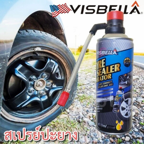 ขาย สเปรย์ปะยางฉุกเฉิน VISBELLA Tyre Sealer Inflator ช่วยปะ ยางรั่ว ยางแบน พร้อมเติมลมให้กับรถ ราคาถูก ใช้ได้กับยางรถทุกชนิดที่ไม่มียางใน